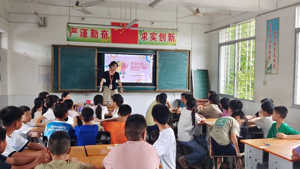 懷著未知與挑戰的心態,我走進教室。結果出乎意料,開課前立下規矩讓我的課程進展得很順利,尤其在課前引入的飛花令中,他們的表現讓我驚喜欣慰,本以為5分鐘結束的游戲沒想到持續了將近15分鐘,有些學生的詩詞底蘊甚至在我之上。之后開始正式教學,同學們的動手能力比我想得要差一點,但是大家都很配合,五年級班主任侯老師也和同學們一起參與,大家參與度和積極性都非常高。