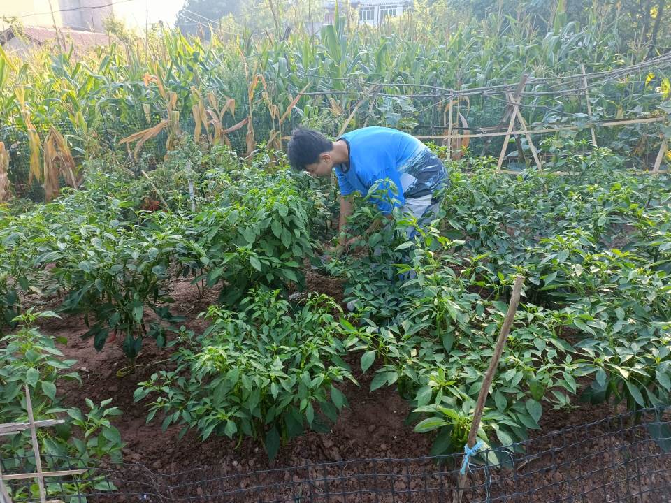 12日早晨6:00,天剛蒙蒙亮,我們吃完早飯就跟著農(nóng)民前往田地里干活,他們有的扛著鋤頭,有的提著鏟子,有的挑著籮筐,穿過村子,沿著彎彎的小路。我們今天的主要任務(wù)就是給農(nóng)作物除草、施肥。盡管我們略帶困意,但是在去田里的路上,我們都略微帶點(diǎn)興奮。從開始干活到現(xiàn)在,不過1小時(shí),無論是用鋤頭除草還是用手拔草,我們手上都不約而同地紅腫,并且起了水泡。除此之外,有近一個(gè)小時(shí)的時(shí)間彎著腰,此時(shí)的我們?cè)缫咽茄岜程郏锌嗖坏7从^農(nóng)民伯伯,依舊游刃有余,甚至都不喘一下氣。農(nóng)民伯伯還熱心給我們地解釋了如何施肥,為什么施肥要在陰雨天氣,為什么不能過多地將肥料撒在作物的根部。