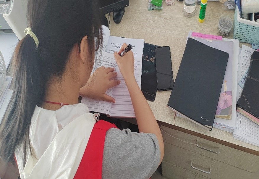 圖為實踐隊員謄抄會議報告 通訊員 梅雯月 供圖