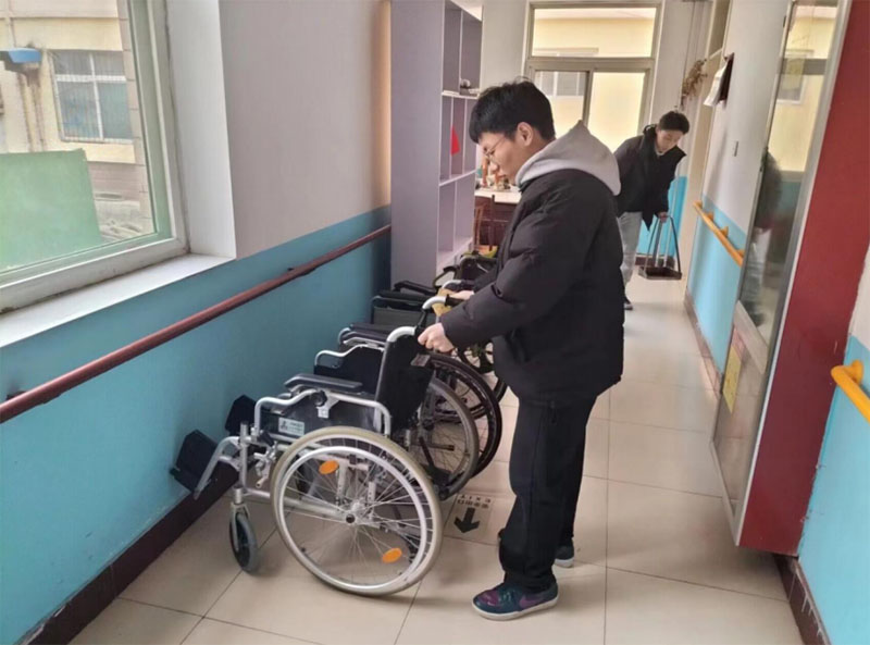。▓D為實(shí)踐團(tuán)成員幫助老人整理輪椅)