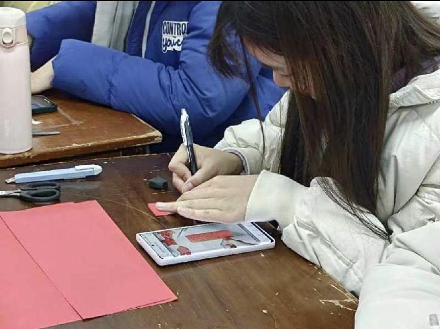 圖為實(shí)踐隊(duì)員體驗(yàn)剪紙活動(dòng)。愛(ài)開(kāi)大學(xué)生網(wǎng)通訊員 張昕琦供圖
