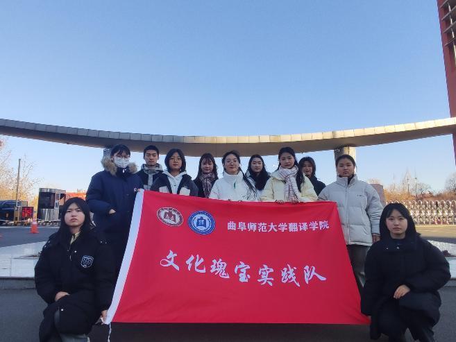 圖為實踐隊員在曲阜師范大學(日照校區) 校門口合影。 愛開大學生網通訊員 馬玉聰 供圖