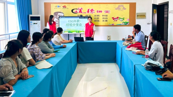 7月30日上午,實(shí)踐團(tuán)隊(duì)抵達(dá)安淮村黨群服務(wù)中心,面向當(dāng)?shù)卮逦c村民展開宣講。以ESG理念為理論支撐,團(tuán)隊(duì)強(qiáng)調(diào)了在鄉(xiāng)村發(fā)展中融入環(huán)境保護(hù)、社會(huì)責(zé)任和良好治理的重要性。同時(shí),成員們以國家級(jí)重點(diǎn)旅游特色村——桂林村的成功案例為藍(lán)本,深入分析將ESG理念應(yīng)用于鄉(xiāng)村旅游產(chǎn)業(yè)的實(shí)現(xiàn)路徑與積極影響,得到村干部與村民的強(qiáng)烈認(rèn)同。