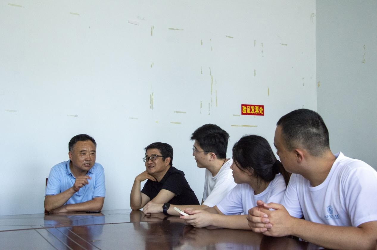 圖為柳山鎮南馬莊村黨委支部王玉寶書記與團隊成員進行密切交談。