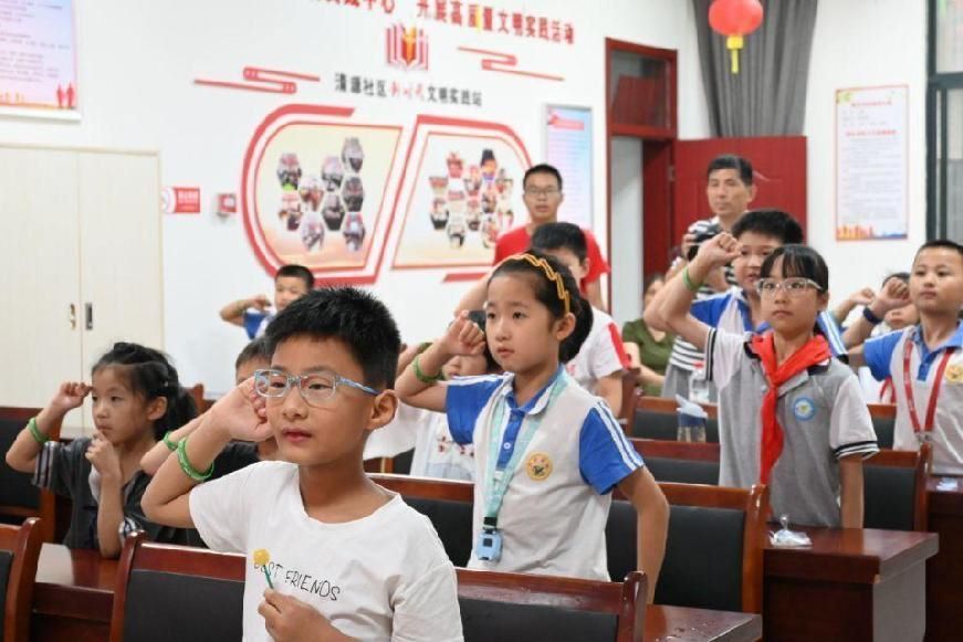 圖為實踐隊員帶領小朋友進行節水宣誓 通訊員 張子悅 攝