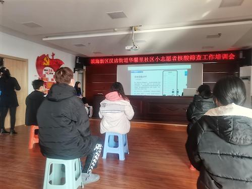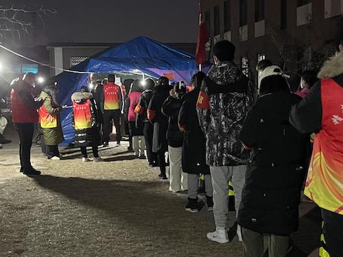 實(shí)踐隊(duì)員在為全社會(huì)高效抗疫動(dòng)容的同時(shí),也切身感受到抗疫工作的艱辛。為切實(shí)做好準(zhǔn)備工作,順利開展三篩工作,濱海新區(qū)于1月14日即進(jìn)行了社區(qū)小志愿者核酸篩查培訓(xùn)會(huì),會(huì)議強(qiáng)調(diào)了三篩過程中相比前兩輪大篩中的不同之處,也為志愿者們?nèi)τ瓚?zhàn)三篩鼓舞了斗志。15日早晨六點(diǎn),實(shí)踐隊(duì)員就已到崗,化身“溫柔大白”,協(xié)助錄入信息、按樓叫號(hào)、安撫居民等多崗工作,至次日上午七點(diǎn)才結(jié)束全部工作。