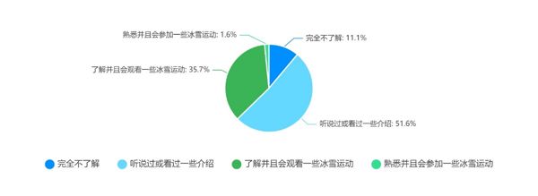 問題4則暴露了體育鍛煉的時間相對不足的問題。由此可見,全民運動、全民健康還有很長的路要走,人們的健康意識也依舊有待增強。問題5針對冬奧會這一冰雪盛會展開針對性調(diào)查。對于冰雪運動,多數(shù)人都是停留在聽說過或者看過一些相關(guān)介紹的層面,不夠深入。