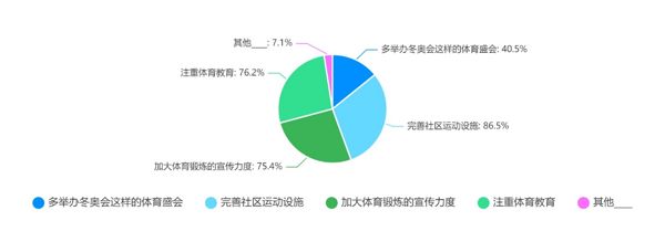 問題8-問題11為一組,集中討論了冬奧會與國民健康的聯(lián)系和提升健康意識的方法。人們對于北京2022年冬奧會的期待與憧憬,顯示著冬奧會的地位。作為世界規(guī)模最大的冬季綜合性運動會,此次成功申辦對推動國人體育運動積極性、了解冬季體育運動項目等方面有很大的正面作用。雖然調(diào)查顯示現(xiàn)在大多數(shù)人對于冰雪運動的了解并不深入,但是問題10中所有人都肯定了冬奧會對冰雪運動的推動作用。相信隨著冬奧會的舉辦,冰雪運動必將形成一股熱潮。問題11反饋顯示大多數(shù)人認為我們應(yīng)該全方位,多角度地努力,既要多找機會舉辦冬奧會這樣的體育盛會,又要大力完善社區(qū)運動設(shè)施,加大體育鍛煉的宣傳力度,同時還應(yīng)該注重體育教育。