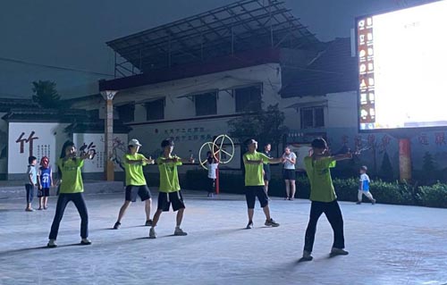 實踐團在村內廣場進行義務表演和宣講,吸引許多村民前來觀看。實踐團在第一書記網格員孫德忠的幫助下,在村內文化大舞臺以及燈塔影視放映屏幕進行節目排練及正式演出。首先,由實踐團隊成員蔡鈺龍、王萌、吳昊東帶來舞蹈串燒,王鈺衡帶來吉他彈唱,活躍廣場氛圍,將氛圍推至高潮。隨后,實踐團隊帶來精心準備的視頻“雞蛋豆漿一起吃真的‘1+1<2’嗎”。最后,由團隊成員趙利新、王鈺衡帶來食品衛生及營養知識宣講,為村民帶來歡樂的同時也宣傳食品安全有關知識。