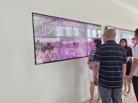 之后工作人員為我們講述了育種,目的是為了解決鹽堿地蟲害多、育種周期長、產量低等問題,便有多家中科院育種團隊入駐共同解決問題。最終篩選出的新品種,被稱為種物中的駱駝,因為它能做糧食,能做飼料,能做糖料,還能做釀酒原料,用途非常多。它們都比較的矮,是因為供給正常水肥去發育成熟,但是卻通過光照、溫度等因素去控制它,使得其生長周期短,還能限制它的增長速度。工作人員之后一共為我們介紹了六種研究出來的新作物。