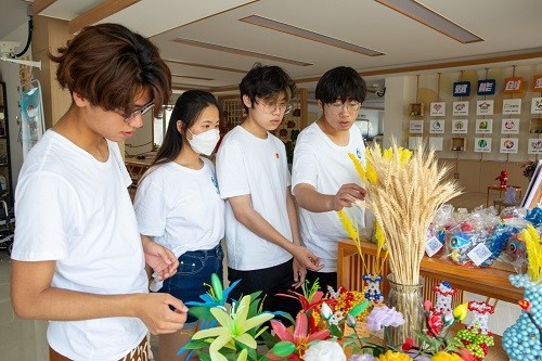 在學習當地垃圾分類的同時,實踐團成員也參觀到了當地資源回收利用的成果,當地組織殘疾人、退休工作人員,開展微創投項目,通過手工品制造、公益攝影、繪畫等方式,在宣傳垃圾分類幫助當地人員就業,并博取社會關注度。