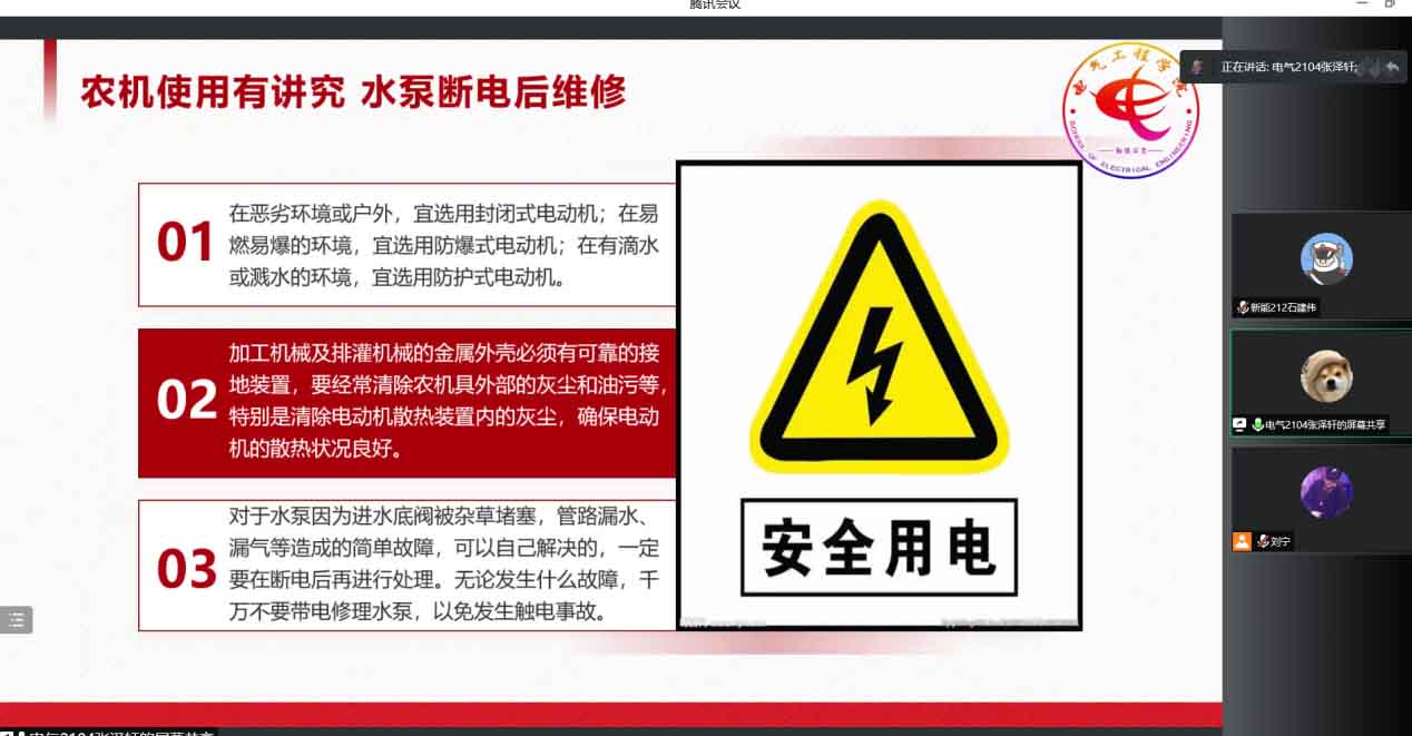 電與農業生產和鄉村生活息息相關,而由于用電安全知識匱乏、使用電器操作不當等原造成意外的隱患愈發突出,因此,增強鄉村居民用電安全意識,幫助其掌握用電安全知識和技能刻不容緩。“用電安全守護隊”校級重點隊將目光放在農村用電安全上,利用自己的專業優勢開展實踐幫扶,充分調研,分析目前我國鄉村用電現狀的優勢及不足,提出相應的解決辦法,體現電院人的責任與擔當,為鄉村振興助力。