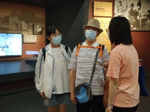 紀念館二層內部房間,記錄了濟南戰役中犧牲的烈士姓名,參觀者可以通過可觸屏查找烈士信息。成員們在參觀過程中也進行了采訪,其中一位接受受訪的53年黨齡的老黨員表示,伴隨中國共產黨,一路走來十分感慨,當代青年也要接受紅色教育為祖國奉獻青春,對于二十大的召開心中充滿期許,對于黨的下一步發展規劃充滿自信;一位中年游客表示自己經常參觀紅色教育基地,當下隨著時代發展推動紅色教育,能夠幫助青少年判斷人生方向、樹立正確的的三觀、不忘初心,十分有意義,二十大的召開不僅為我們下一步發展指明方向,更加堅定我們跟隨共產黨堅持中國特色社會主義道路的信心,增強黨的凝聚力和戰斗力;一位少年學生表示,家長經常帶自己參觀此類紅色基地,自己也對此類活動十分感興趣,收獲頗豐。成員們在參觀的過程中也發現不少的家長在帶領孩子參觀的過程中,會對參觀內容進行講解,共同回憶從前的故事。