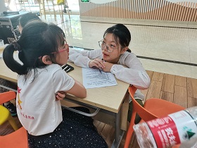 留校實踐團成員和“小候鳥”們圍坐在一起,隊員們根據(jù)采訪問題,與“小候鳥”進行了親密的溝通交流,并詳細地記錄了采訪的內(nèi)容。有些小朋友們在最開始進行交流時還有些靦腆害羞,不敢表達,但在隊員們的耐心引導下,還是漸漸敞開了心扉,愿意跟隊員們表達心里的一些想法。隊員們在采訪的同時,也同小朋友們分享自己的童年趣事,拉近與小朋友之間的距離,調(diào)節(jié)采訪的氛圍,讓現(xiàn)場充滿了歡聲笑語。通過跟“小候鳥”的溝通交流,隊員們感受到了他們對生活的熱情,對父母的關心與愛;同時,也驚嘆于他們的乖巧勤勞。他們有時候揣著心事卻無人分享,父母無法常常陪伴在身側,但他們對父母是體諒的,是理解的。暑期對于“小候鳥”們來說是非常珍貴的一段時間,他們熱烈地渴望著父母的陪伴。除此之外,根據(jù)隊員們的了解,“小候鳥”們有著較好的飲食習慣,挑食的習慣不常見,注重攝入牛奶、果蔬。