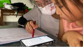 圖為實(shí)踐隊(duì)員為留守兒童開(kāi)展線上推普課程。團(tuán)隊(duì)成員 佘采薇 攝