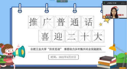 合肥工業(yè)大學(xué)赴安徽省肥西縣嚴(yán)店鎮(zhèn)推普助力鄉(xiāng)村振興服務(wù)隊(duì)分組前往嚴(yán)店社區(qū)、勞光社區(qū)、西鄭崗社區(qū)和蓮花村,為全面落實(shí)全國(guó)語(yǔ)言文字會(huì)議精神、做好國(guó)家通用語(yǔ)言文字教育,開(kāi)展留守兒童國(guó)家通用語(yǔ)言文字使用能力調(diào)研及普通話推廣活動(dòng)。本實(shí)踐團(tuán)隊(duì)將嚴(yán)店鎮(zhèn)留守兒童作為調(diào)研及服務(wù)對(duì)象,通過(guò)家訪及普通話水平測(cè)試了解其普通話使用現(xiàn)狀,根據(jù)調(diào)研結(jié)果開(kāi)展一系列線上線下推普活動(dòng),促進(jìn)當(dāng)?shù)亓羰貎和Z(yǔ)言能力全面發(fā)展,助力語(yǔ)言賦能鄉(xiāng)村振興。