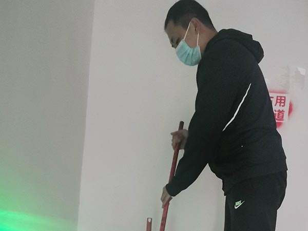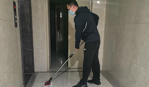 “眷念家鄉”實踐團擦拭樓梯間扶手