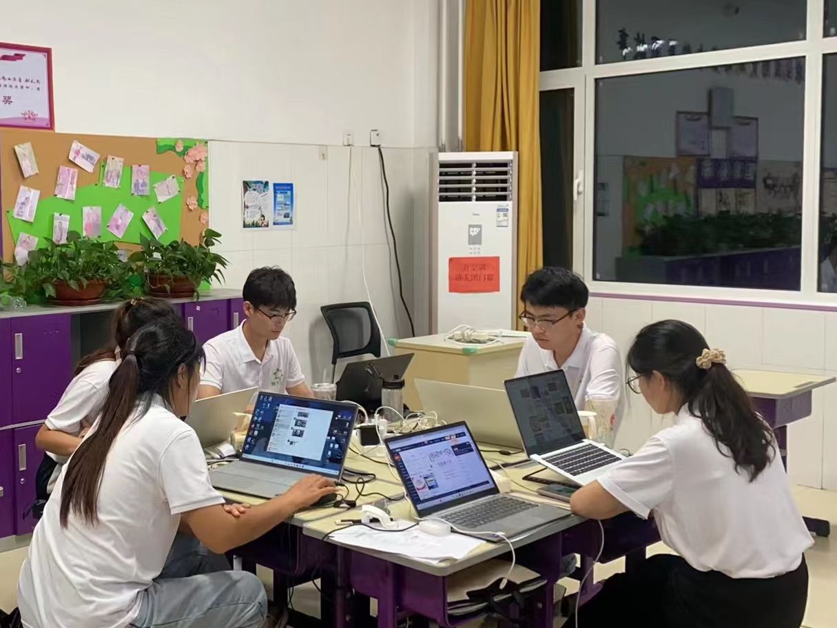 圖為支教隊員加班準備第二天課程 通訊員 王森