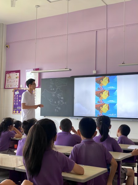 線下支教:培養多元素質,點燃求知欲線下支教分為第一期和第二期,由來自各個領域的志愿者組成,共計120余名二年級學生參與其中。“我們的課程安排不僅豐富多彩,更旨在喚起孩子們對知識的渴望。”支教隊隊長劉煥煥說。線下支教活動包括科普課、國學課、環境保護課、魔方課、折紙課、心理健康課、消防安全課等等,為孩子們提供全面的教育體驗。科普課上,劉新楷老師將航空母艦和船上的人相比較,把抽象的概念轉化為趣味的講解,讓孩子們更好的理解航母之大。黨史課上,學生們不理解抗日戰爭的局勢,王森老師大展身手在黑板上畫了一幅中國地圖。回憶起這件事情的時候,張雅晴同學特別激動地說:“那一刻我覺得老師就是我心中的神。”王森老師感慨道:“其實我根本不會畫畫,但是作為老師我愿意為了學生學會這些。”