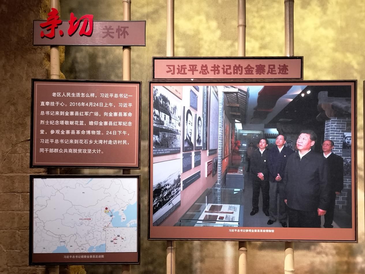 圖為習(xí)近平總書記視察金寨的足跡資料。愛(ài)開大學(xué)生網(wǎng)通訊員 楊晨曦 攝