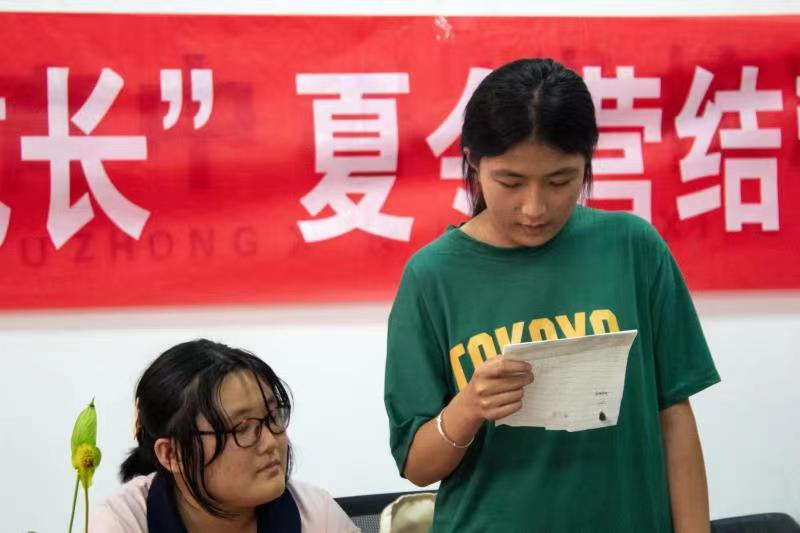 上午大家進(jìn)行了扎染工藝的學(xué)習(xí)和實(shí)踐,重溫扎染的流程,感受動(dòng)手實(shí)踐的樂(lè)趣。志愿者教授孩子們毛筆字的方法和技巧,帶領(lǐng)孩子們感受中國(guó)優(yōu)秀傳統(tǒng)文化毛筆書寫的韻味和樂(lè)趣。下午大家佩戴京劇臉譜,學(xué)習(xí)京劇手勢(shì)動(dòng)作,感受生旦凈丑的中華文化魅力。鎮(zhèn)政府領(lǐng)導(dǎo)和志愿隊(duì)、孤困兒童一起舉行座談會(huì)和結(jié)營(yíng)儀式,會(huì)上政府領(lǐng)導(dǎo)高度贊揚(yáng)了志愿隊(duì)所做出的努力,大家暢所欲言,講述了這一周來(lái)的收獲與感悟,孩子們表示這幾天收獲了很多,學(xué)到了很多,以后一定努力學(xué)習(xí),長(zhǎng)大成為對(duì)社會(huì)有用的人。晚上志愿隊(duì)到一位孤困兒童家去家訪和慰問(wèn)。