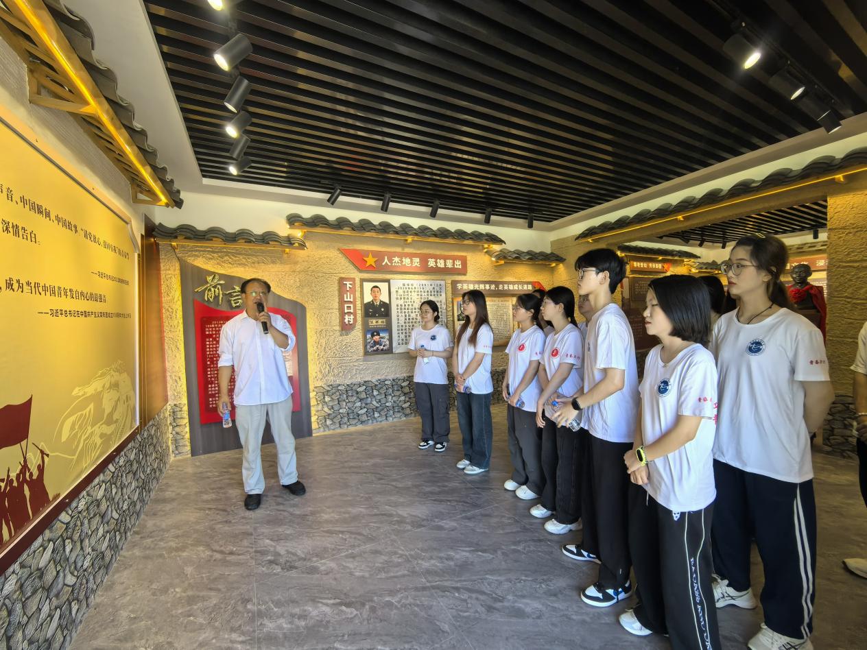 社會實踐的第三站我們來到了位于下山口村的陳祥榕愛國主義教育基地;刎撠熑岁懙郎鷱“人杰地靈,英雄輩出”“尊老愛幼,傳承美德”“勇毅從軍,報效祖國”“寧灑熱血,不失寸土”四個方面圍繞陳祥榕烈士的生平事跡開展了一堂“場館里的思政課”。隊員們被這種“雪山回蕩英雄氣,風雪邊關寫忠誠”的精神深深折服,紛紛表示作為新時代大學生,要將“清澈的愛,只為中國”的紅色革命文化內涵發揚光大,在日常生活中用自己的實際行動繼承、弘揚和發展紅色革命文化,弘揚以偉大建黨精神為源頭的中國共產黨人精神譜系,努力成為擔當民族復興大任的時代新人。在參觀教育基地時,許多人聽到陳祥榕烈士的事跡都落下了眼淚,不僅是隊員們,帶隊的老師們也深受感動,由此可見,陳祥榕的愛國精神是引起全體中國人共鳴的偉大精神,我們要學習他的這種愛國精神,不斷將其發揚光大。