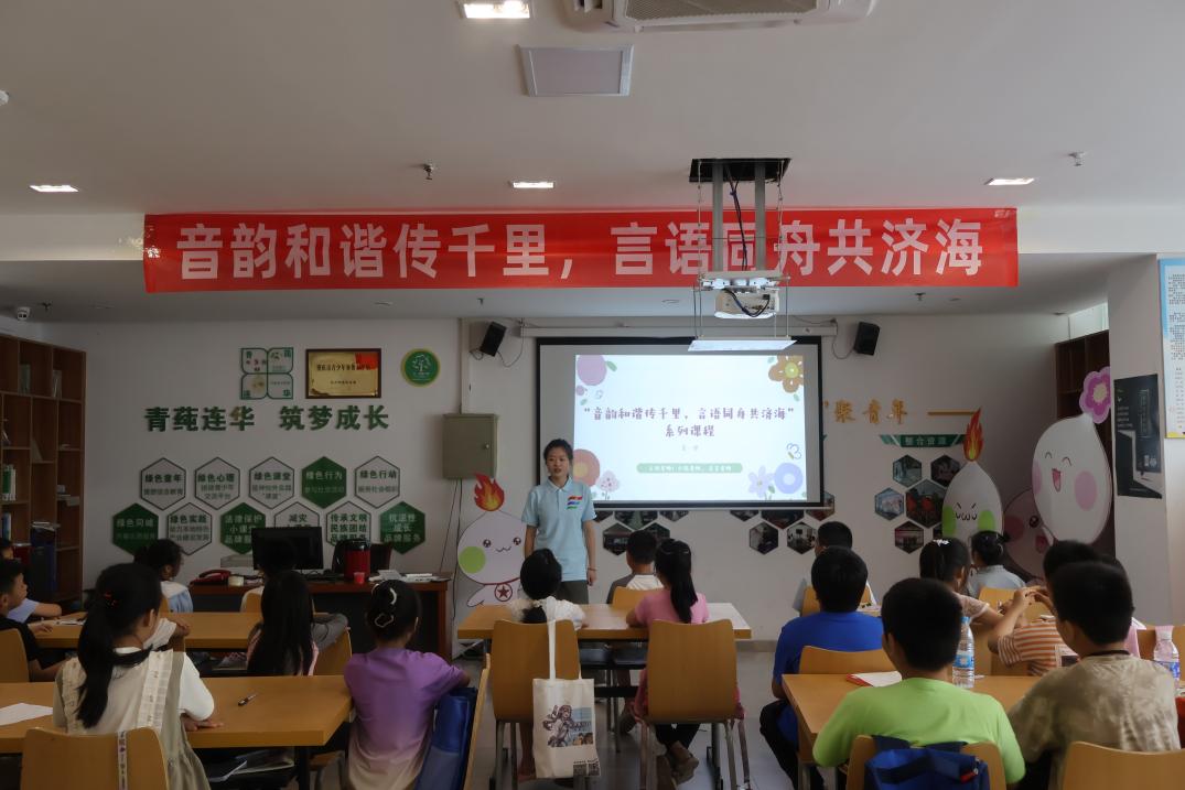 在習近平新時代中國特色社會主義思想的指引下,要求強化教育教學和結合地方文化,推廣普通話工作具有了更為深刻的重要意義。服務隊成員趙靈和賈已銘為孩子們帶來了“音韻和諧傳千里,言語同舟共濟海”推廣普通話系列的第一節課程。課程內容著重講述了普通話的重要性,讓孩子們深刻認識到普通話在溝通交流、學習知識以及未來發展中的關鍵作用。