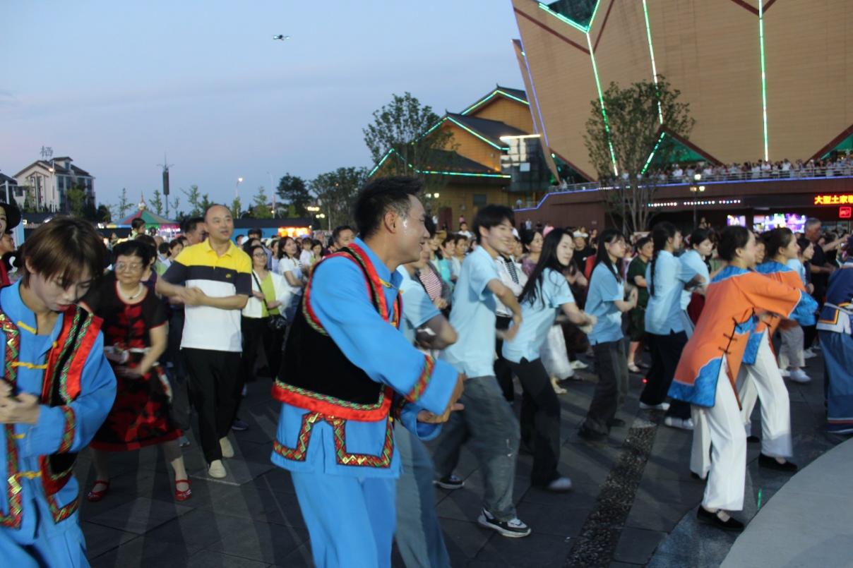 擺手舞動山河,長桌宴聚民心“挺膺擔當,青春逐夢”宣講團來到了石柱黃水鎮,參與了當地的長桌宴和擺手舞。在長桌宴現場宣講團成員跟隨土家女孩兒一起游街,觀看舞獅、鑼鼓等傳統節日。在長桌宴結束后,宣講團成員來到了天上黃水大劇院跟著專業舞者一起齊跳擺手舞。