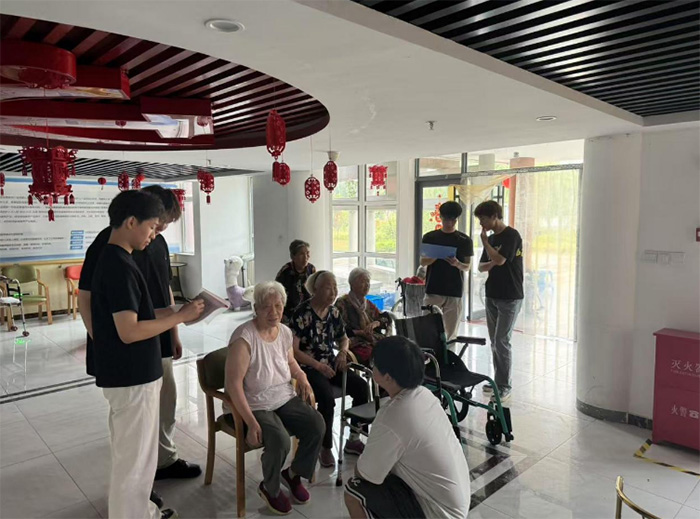 在室內,交流的場景同樣溫情滿滿。實踐團成員通過閱讀報刊、分享趣聞等方式,與老人建立情感聯系。一位志愿者手持筆記本,認真記錄著老人講述的往昔故事,另一位則拿著繪本與一位坐在輪椅上的老人一起翻閱,時不時傳出輕松的笑聲。實踐團希望通過深入交流,了解老人們的生活狀態與真實需求,真正實現情感陪伴的目標。