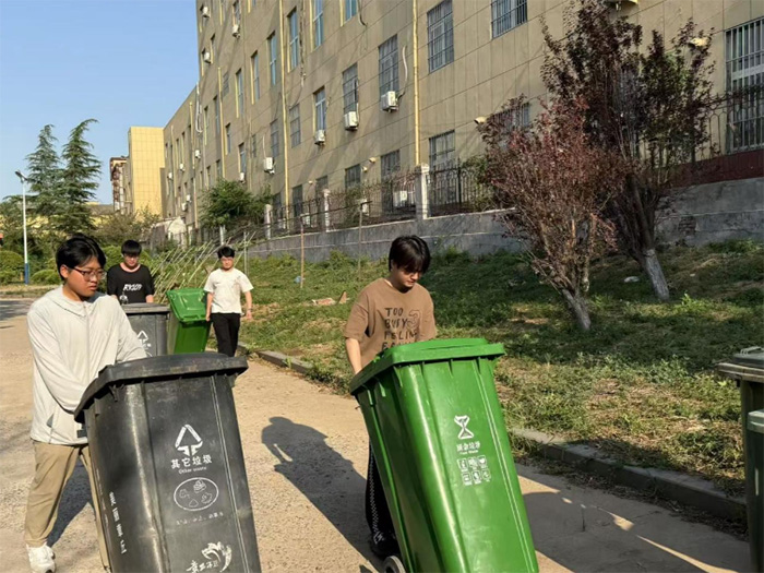走進(jìn)日月潭養(yǎng)老中心,實(shí)踐團(tuán)成員們首先對(duì)院內(nèi)各類垃圾桶進(jìn)行了歸類搬運(yùn)。根據(jù)生活垃圾分類標(biāo)準(zhǔn),他們將“其他垃圾”與“廚余垃圾”分別引導(dǎo)至指定清運(yùn)點(diǎn),有序完成清理任務(wù)。這不僅提升了院內(nèi)衛(wèi)生水平,也協(xié)助工作人員減輕了日常工作負(fù)擔(dān)。在整理過(guò)程中,隊(duì)員們注意觀察分類標(biāo)識(shí),并主動(dòng)向工作人員請(qǐng)教分類細(xì)節(jié),以確保每一步操作規(guī)范、準(zhǔn)確。
