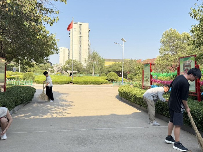 隨后,實(shí)踐團(tuán)又集中力量對(duì)養(yǎng)老中心外圍道路、綠化帶等公共區(qū)域進(jìn)行了清掃。烈日之下,成員們揮動(dòng)掃帚,清除落葉與塑料雜物,并將整理出的廢棄物再次分類回收。經(jīng)過(guò)整治的小道整潔如新,休息區(qū)座椅一塵不染,老人們?cè)谇逍碌沫h(huán)境中休憩時(shí),臉上多了幾分愜意。