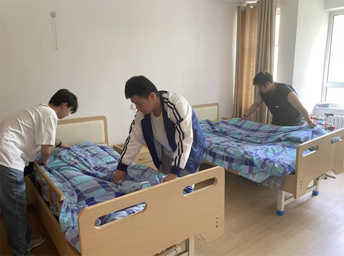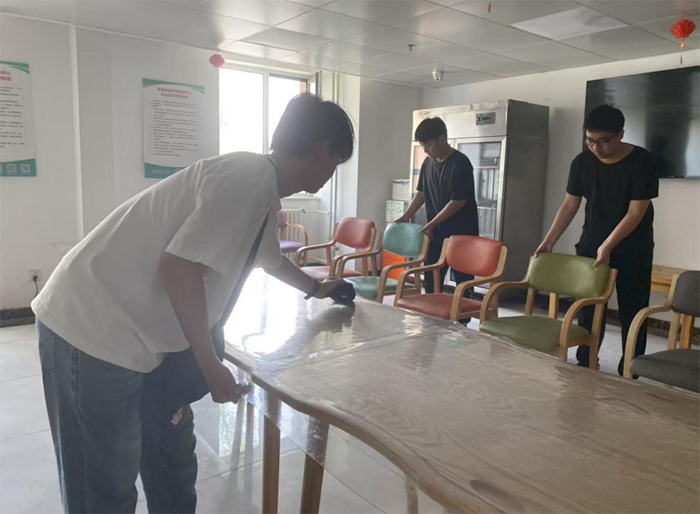 活動期間,實踐團成員每天早上會提前到達養老院內,根據工作人員安排,有序參與到院內日常服務工作中。其中,協助清潔與擺放活動區桌椅成為志愿者們最基礎的任務。
