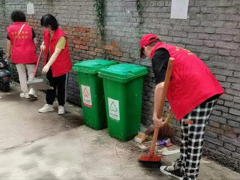 圖為實踐團成員在社區清理垃圾。李欣霖 供圖