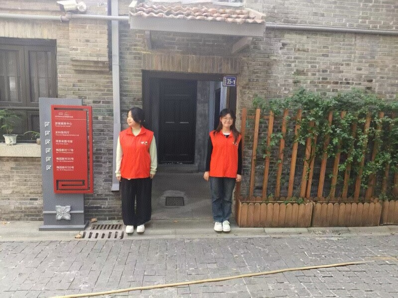 圖為實踐團成員在梅園新村做志愿者。束茜 供圖