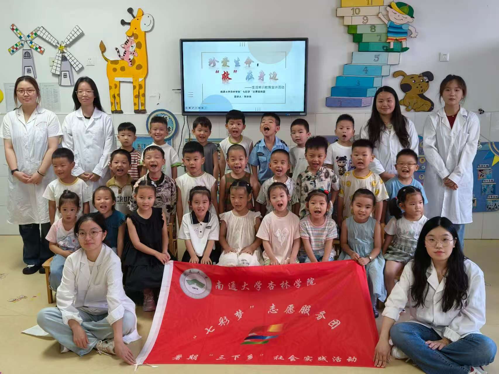 為深入貫徹鄉村振興戰略,助力提升全民健康意識,7月21日下午,南通大學杏林學院“七彩夢”志愿服務團走進鹽城市鹽灣幼兒園,開展了一場以“珍愛生命,‘救’在身邊”為主題的生活常識教育宣講活動。活動通過PPT講解與分組實踐相結合的形式,為小朋友們普及急救包扎知識,促進安全意識培養。