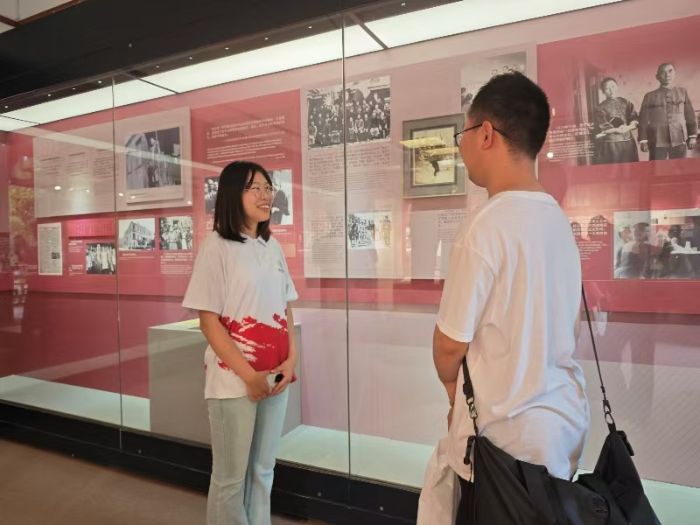 在宋慶齡先生曾伏案工作的書桌前,一位帶著孩子參觀的年輕母親對實踐團成員說:“每次帶孩子來這里,都想讓她感受宋奶奶的大愛。她告訴我們,真正的力量來自于對國家和人民的愛,無論男女,都能擔當大任。”團隊成員孫賽博同學深有感觸:“以前只知道宋慶齡先生是國母,很偉大。但今天,從這些生活細節和奮斗歷程中,我感受到了她作為革命者、建設者的真實溫度與磅礴力量。她的‘大愛’精神,是我們青年一代在追求個人價值時,必須銘記的坐標。”這份純粹而深厚的家國情懷,如明燈照亮前路,提醒著新時代青年:唯有將個人理想融入時代洪流,以奮斗擦亮青春底色,方能真正回應“強國有我”的錚錚誓言。