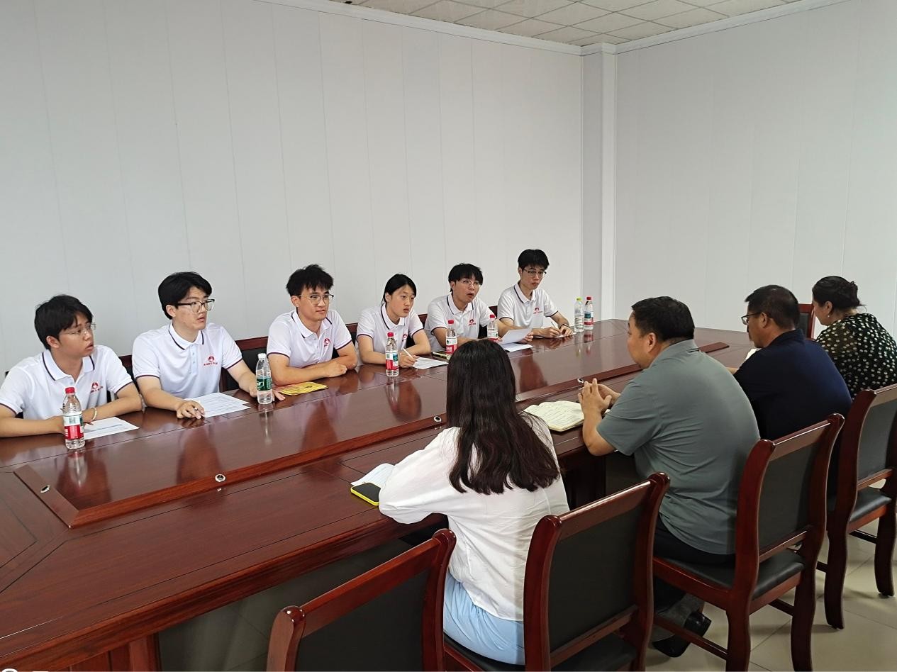 圖為實踐隊在與團市委派駐牛家村第一書記張祎萌、村負責人張全峰會面