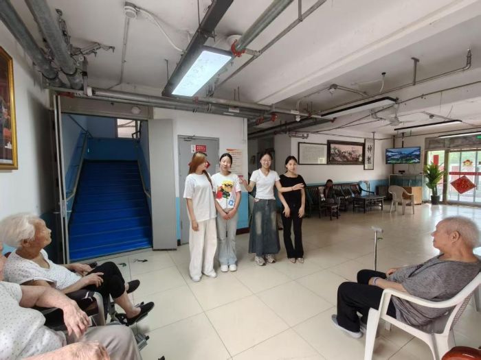 在活動中,實踐團成員們帶著熱情展示才藝。歌聲與話語交織,傳遞著青春的溫度。老人們靜靜聆聽,眼角笑意流淌,時光在此刻慢下來,讓關愛化作具象,在這一方空間里,續寫代際間的溫暖篇章。