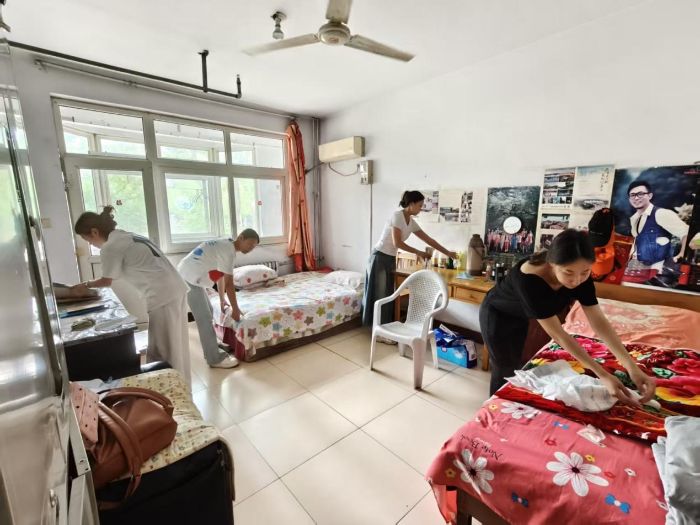 在實踐服務過程中,實踐團成員以熱情友好的態度做好每一項工作,有的拿起抹布,仔細擦拭老人房間的桌椅,從桌面到桌腿,不放過任何一處灰塵,讓家具重新煥發光潔;有的認真整理床鋪,撫平床單褶皺,將被褥規整擺放,讓老人的休息空間更顯溫馨。實踐團成員們忙碌的身影穿梭在房間里,專注又投入,用細致服務為老人營造干凈舒適的居住環境。
