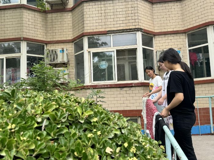 實踐團成員們聚焦生活細節,為老人晾曬被褥。他們仔細整理被角,借助陽光驅散潮氣,讓溫暖融入日常。養老院庭院內,綠植相伴,實踐團們認真專注的身影,成為一道傳遞溫情的風景。