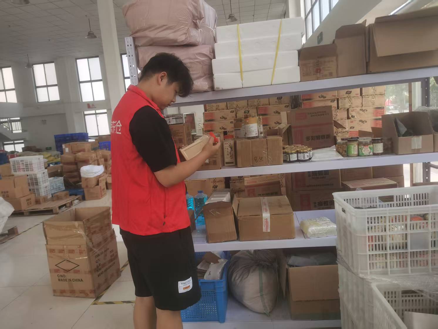 圖為實踐員趙天軼在實踐地門口 倉庫主管介紹了電商訂單分揀流程和注意事項等。首先分配至日用品區,在工作中認真對訂單進行審核、分類確保信息準確無誤,核對商品型號與訂單信息,避免錯發漏發。完成貨物搬運、分揀、面單粘貼等工作。高峰期單日處理單量超過400件,對現代化云倉智能化管理模式有了直觀且全面的認識。