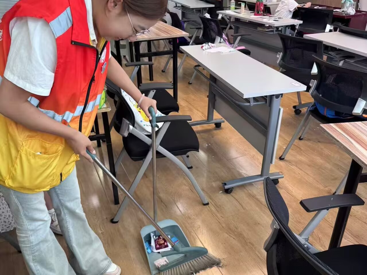 圖為實踐團成員幫忙打掃衛(wèi)生