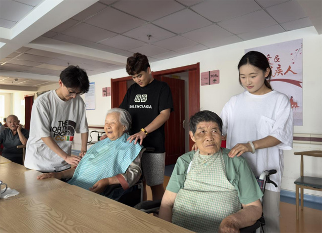 在日常照料環節中,志愿者們還為部分高齡老人進行輕柔的按摩和肩頸放松。老人們在關懷中露出欣慰的笑容,不少人對年輕人的細致照料表示由衷感謝。這些實際行動不僅減輕了老人們的生活負擔,也讓他們感受到來自社會的溫暖與尊重。