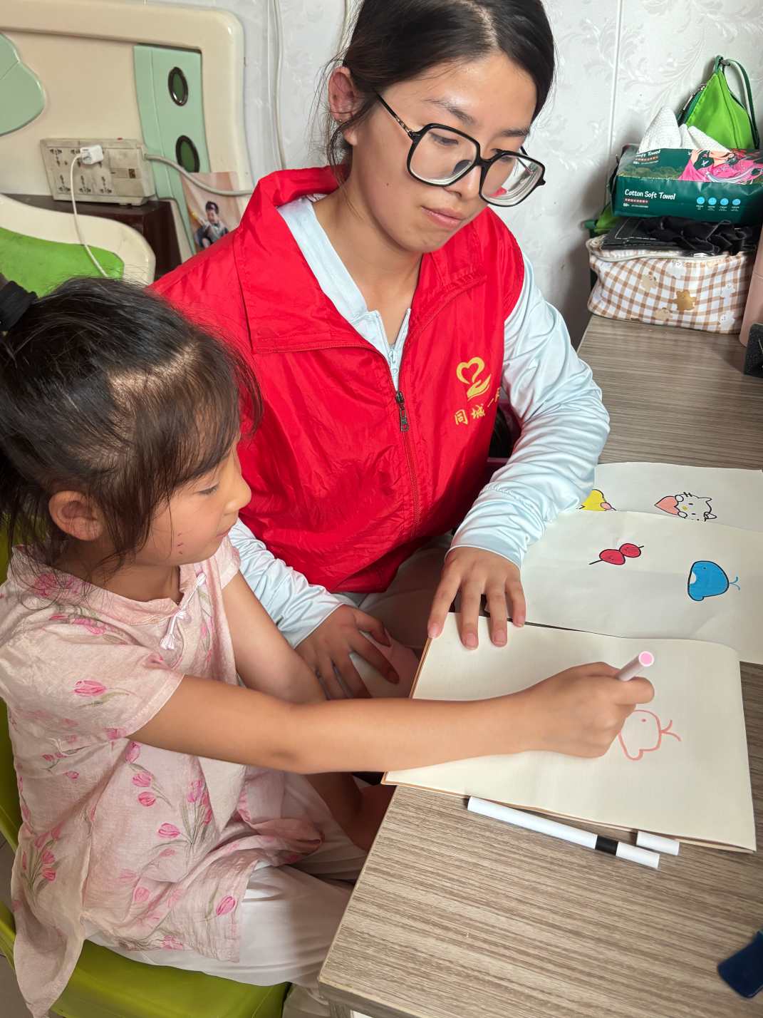 聚焦鄉村兒童成長,實踐團成員化身“青春導師”,陪伴孩子繪畫創作。在溫馨的室內空間,耐心引導孩子發揮想象力,以藝術交流搭建起關愛橋梁,為鄉村孩童送去知識與溫暖,點亮童年色彩。
