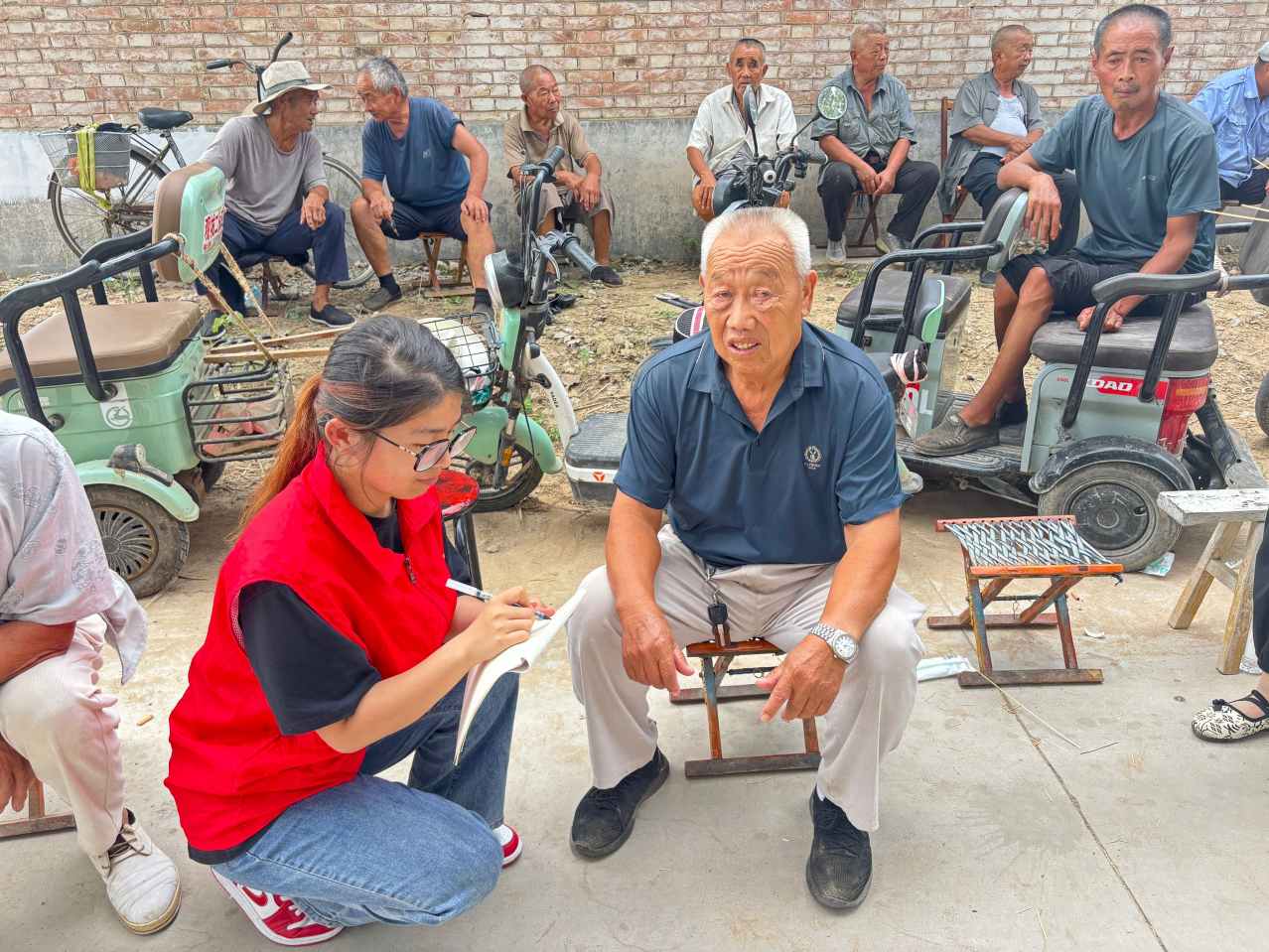 深入鄉間街頭,實踐團成員與老年村民圍坐交流。成員認真傾聽老人講述鄉村故事與生活需求,細致記錄內容,在嘮家常中拉近與基層群眾距離,讓調研更貼民心、實踐更有溫度。