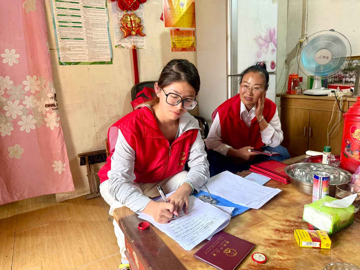 走進鄉村農戶,實踐團成員身穿紅色志愿馬甲,協助整理檔案資料。在充滿生活氣息的室內環境中,專注記錄信息,為基層數據梳理與民生服務優化貢獻力量,用實際行動助力鄉村治理精細化。