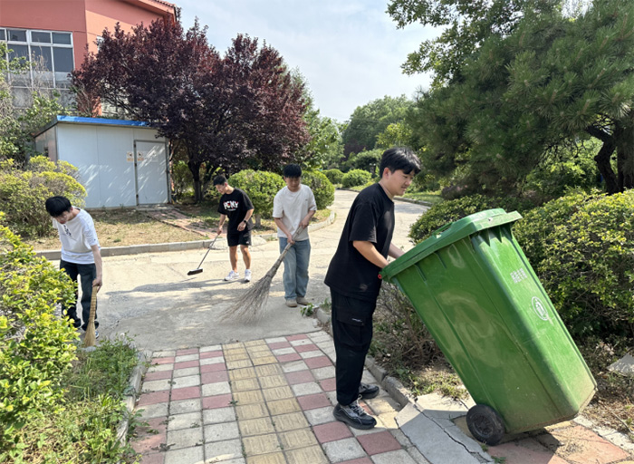 活動期間,實踐團成員按照每日安排,協助養老中心開展多項生活服務。在戶外清潔環節中,幾位成員手持掃帚、簸箕,分工協作清掃院內落葉和道路積塵,并對綠化帶內的垃圾進行集中清理,確保院內環境整潔有序。在清運垃圾過程中,成員們齊心協力,將分類后的生活垃圾及時投放至指定回收點,為養老中心營造了更加舒適宜居的生活環境。