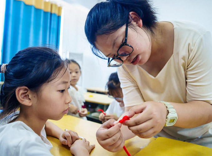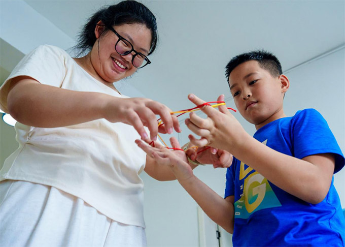 圖為實踐團成員毛穎悅在課后和小朋友們翻花繩