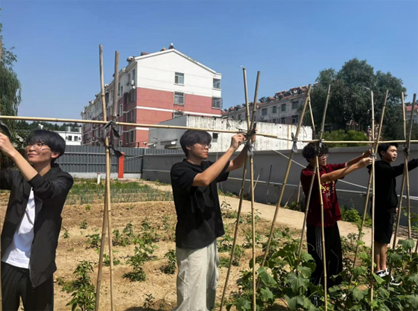 在養(yǎng)老院的菜園里,志愿者們還幫助搭建支架,整理種植區(qū)域,為農(nóng)作物的生長創(chuàng)造良好條件。炎炎烈日下,他們揮灑汗水,忙碌的身影與整齊排列的支架相映成趣,為院內(nèi)的綠色空間增添了生機(jī)。