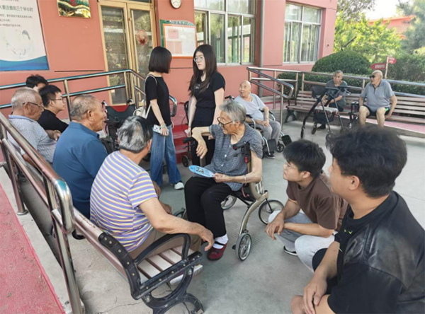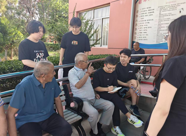 在養老中心的庭院里,志愿者們與長者們圍坐在一起,認真傾聽他們講述過往的生活故事。幾位老人邊聊邊比劃,年輕人則一邊記錄,一邊耐心回應,現場氣氛輕松愉快。許多老人主動分享自己的人生經歷和生活感悟,志愿者們從中汲取了寶貴的智慧與經驗。